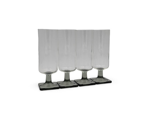 Set of 4 Vintage Mid Century Modern Nordic Midnight Square Base Stemmed Champagne Glasses - Smoked Glass Base