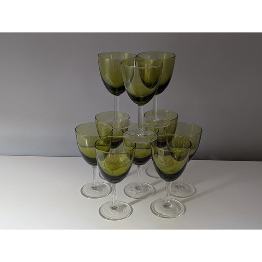 Set of 10 Vintage Mid-Century Modern Green Stemmed Glasses