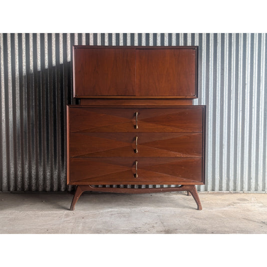Vintage Mid-Century Modern Diamond Front Highboy Dresser