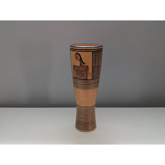Vintage Studio Pottery Vase in Earth Tones, Mid-Century Modern Style, Signed.