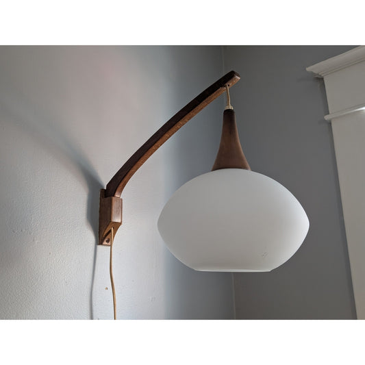 Vintage Mid-Century Modern Wall-Mount Swing Arm Pendant Lamp Frosted Glass Globe