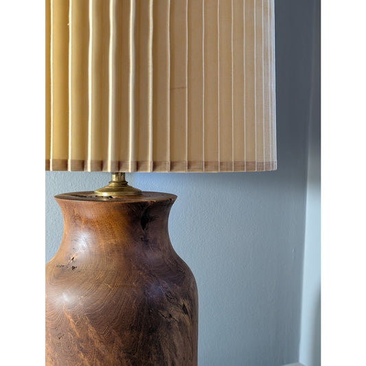 Vintage Mid-Century Modern Turned Burlwood Table Lamp with Stiffel Shade