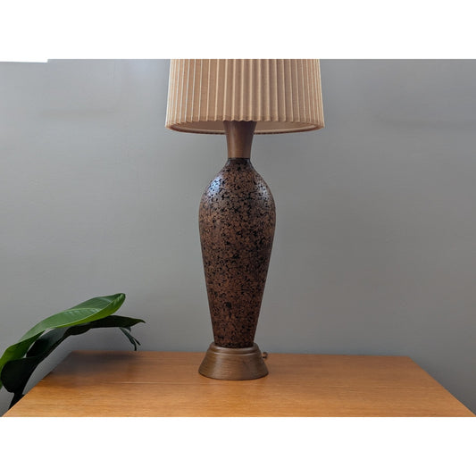 Large Vintage Mid-Century Modern Walnut and Cork Lamp with Stiffel Shade