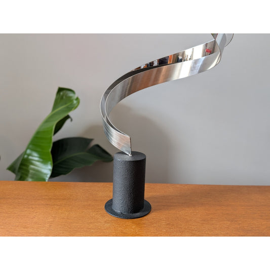Vintage Curtis Jere Ribbon Swirl Sculpture with Heavy Base – Signed, 31" Tall