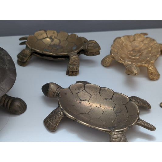 Collection of Vintage Brass Turtle Trinket Trays, Paperweight & Mail Clip