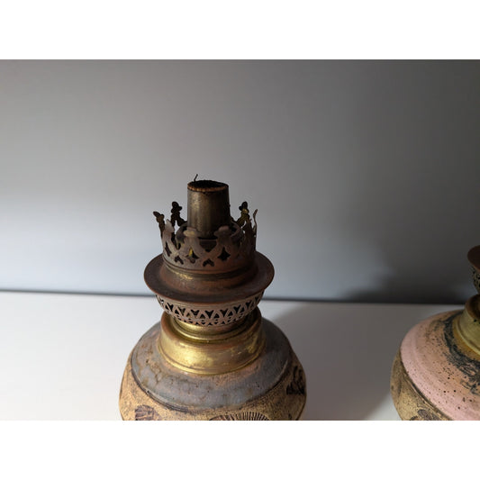 Pair of Vintage Pottery Candle Holders in Earth Tones