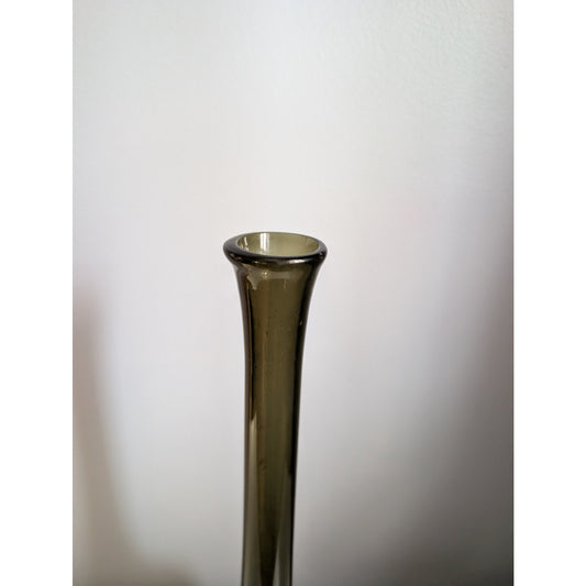 Vintage Mid-Century Modern Smoked Glass Genie Bottle, Unique Squared Base