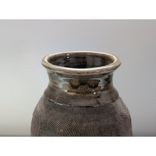 Vintage Studio Pottery Ikebana Vase in Dark Earth Tones