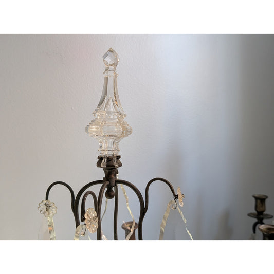 Pair of Vintage Louis XV Style Brass & Cut Glass Girandole Candelabras