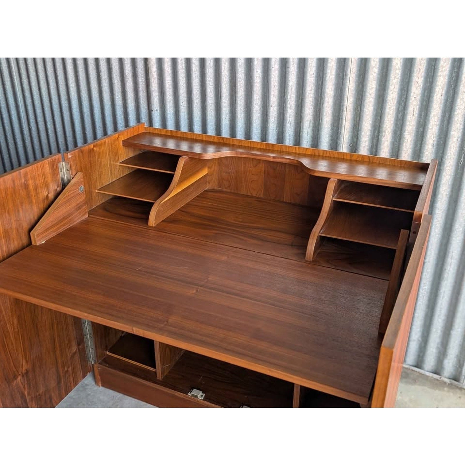 Mid Century Danish Modern Compact Cabinet With Convertible Flip Flap Desk. Teak