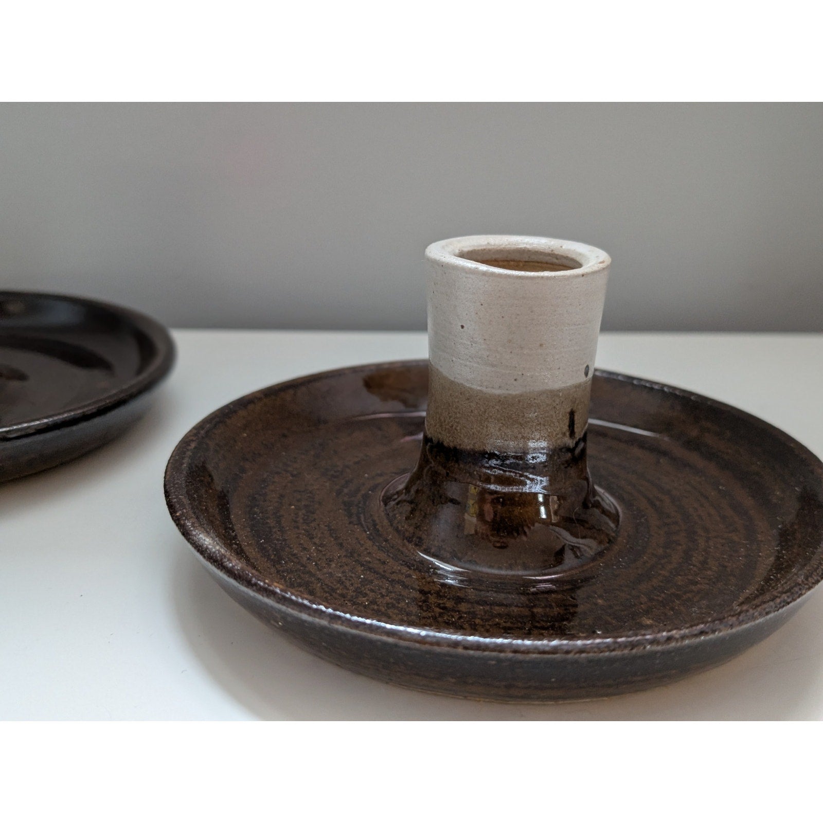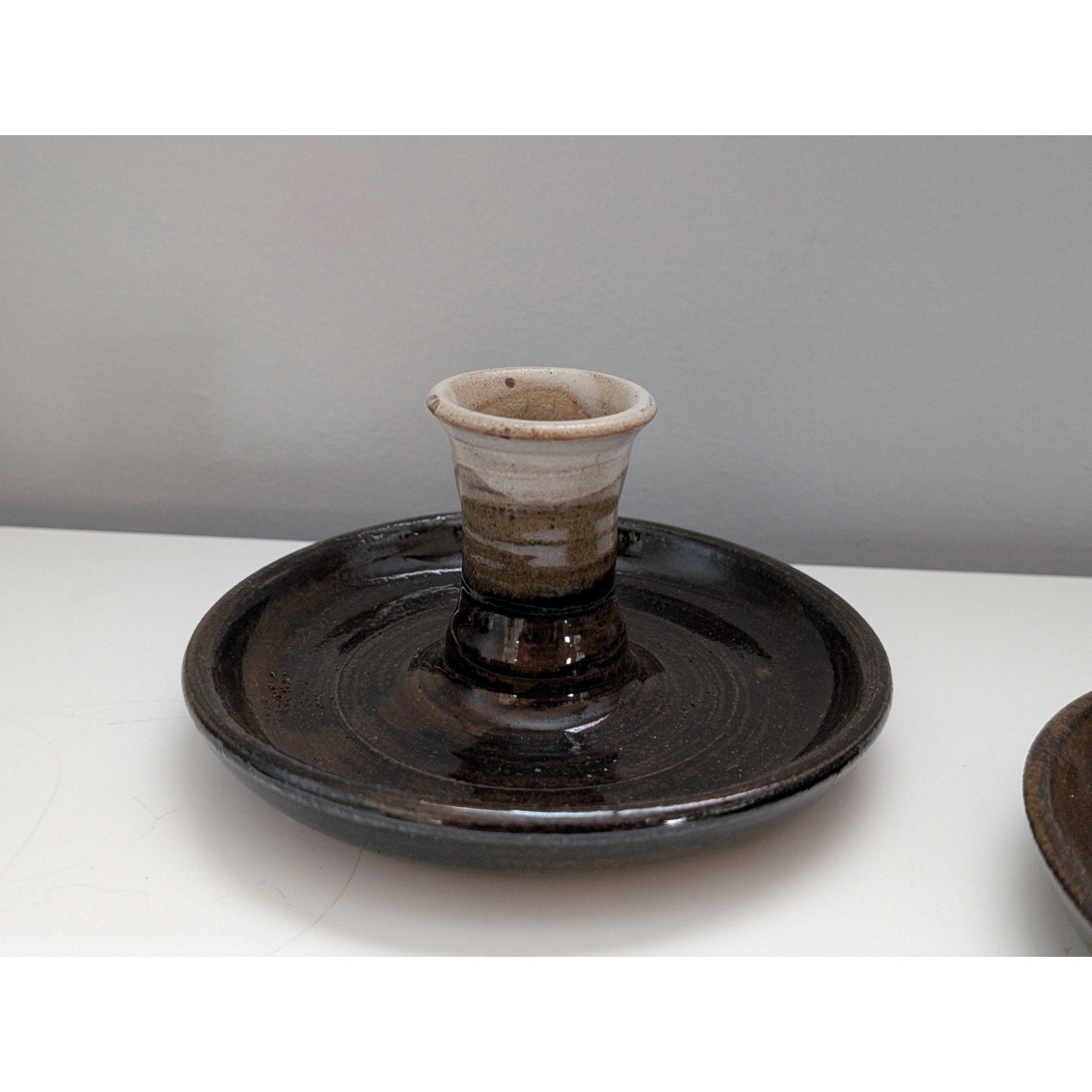 Pair of Vintage Pottery Candle Holders in Earth Tones