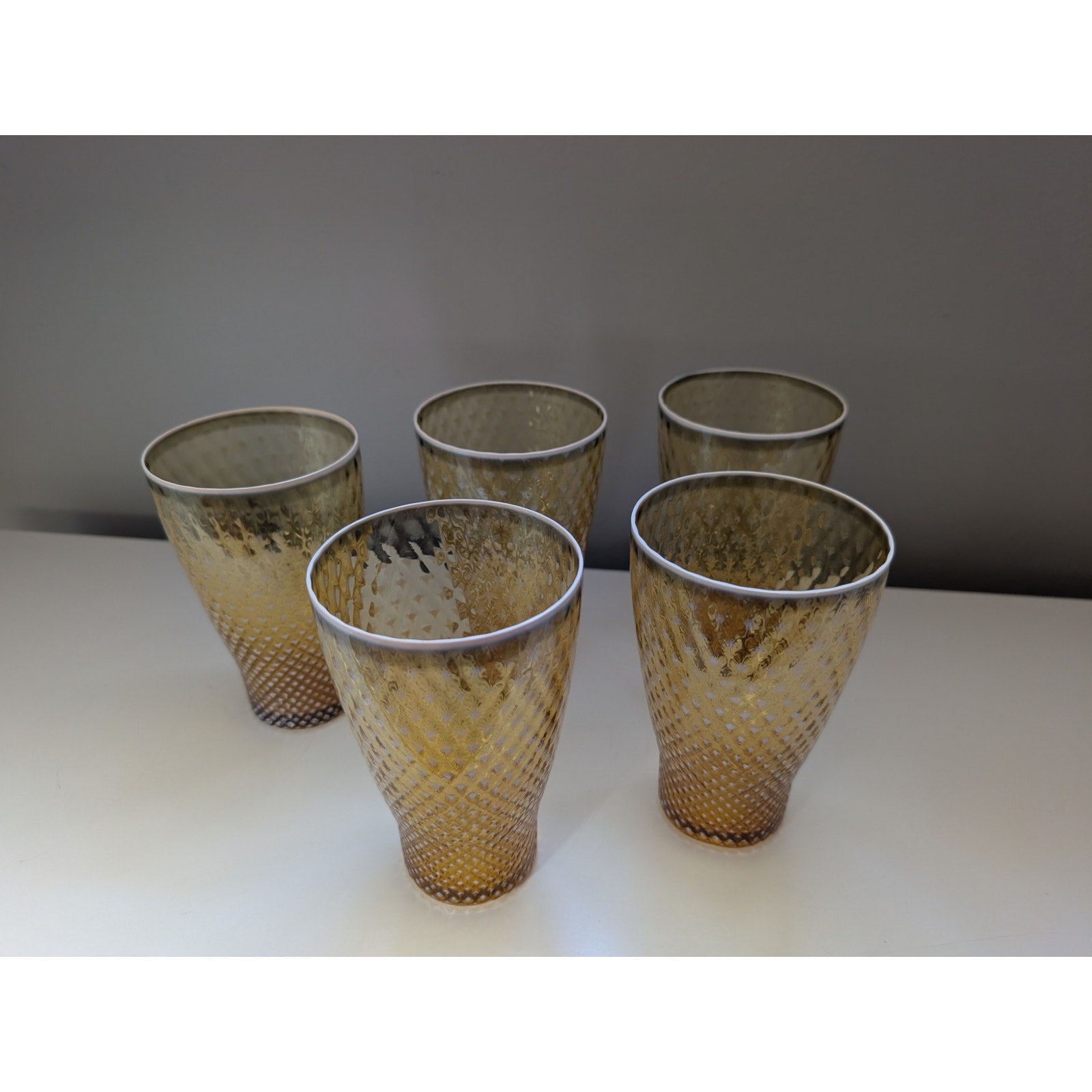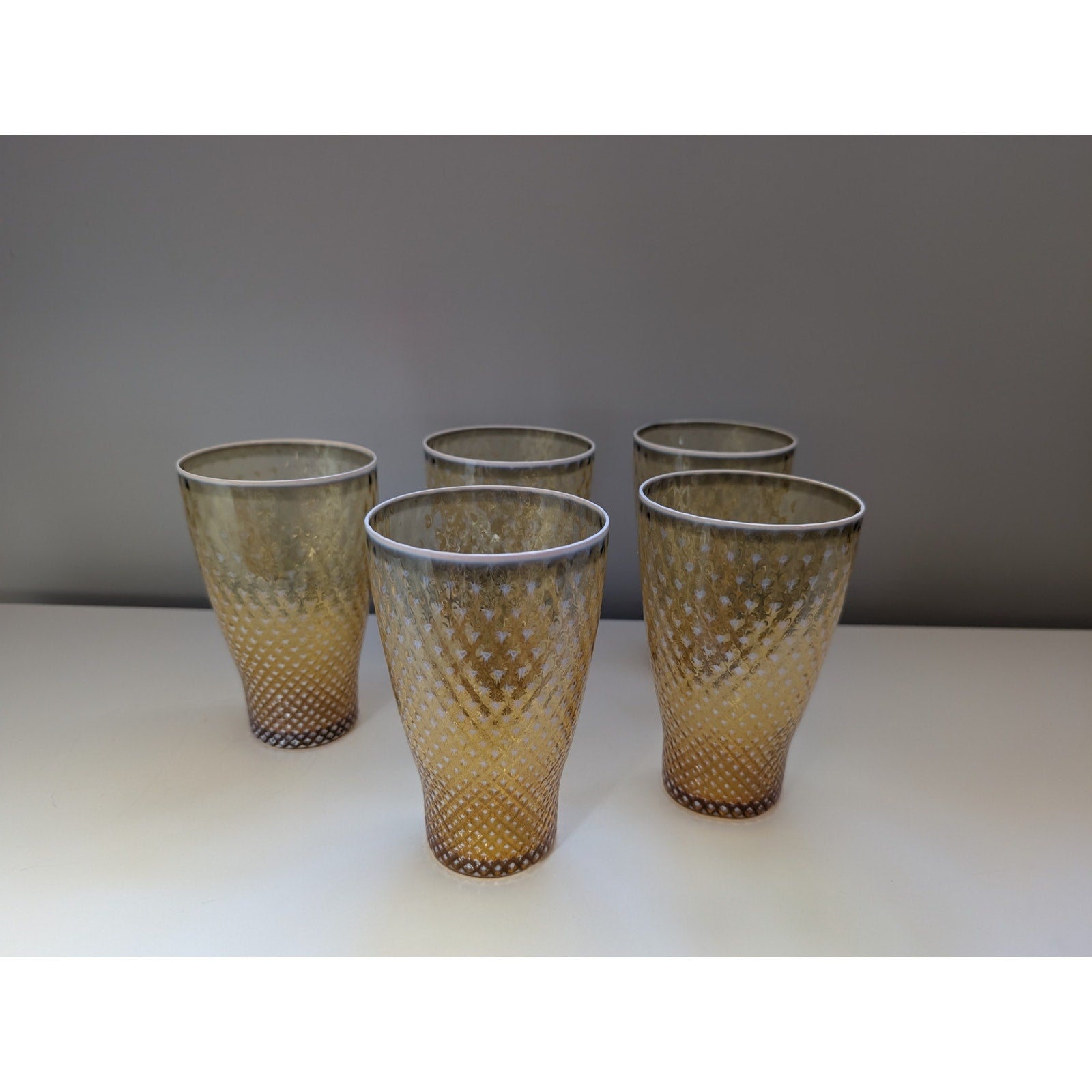 Set of 5 Fostoria Opalescent Gold Needlepoint Glass Tumblers