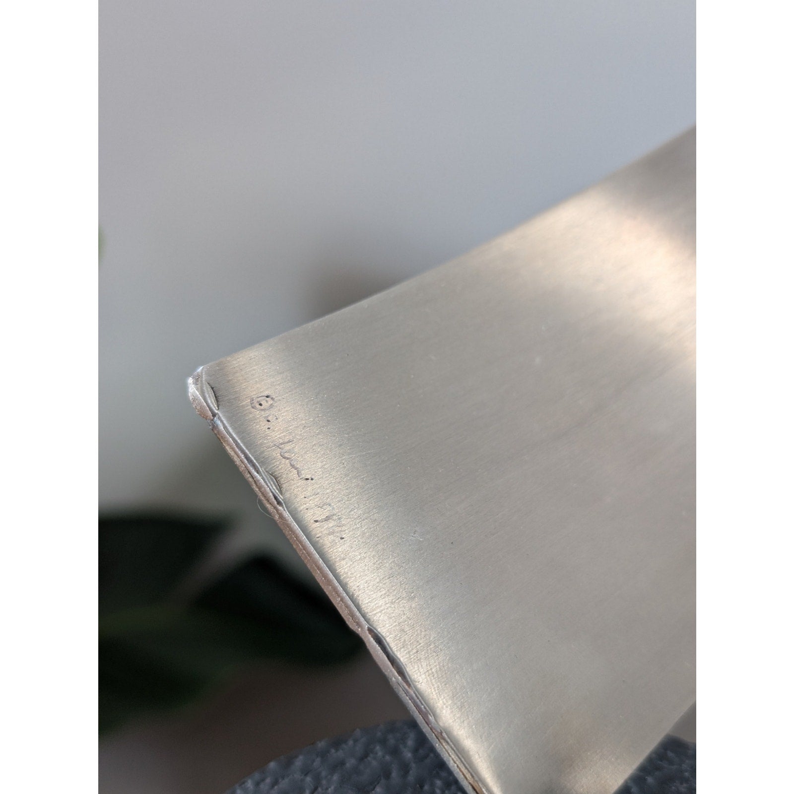 At 31 inches tall, the sculpture makes a bold statement as a floor piece, console accent, or focal point in a modern or mid-century modern interior. A highly collectible example of iconic American metal art design.