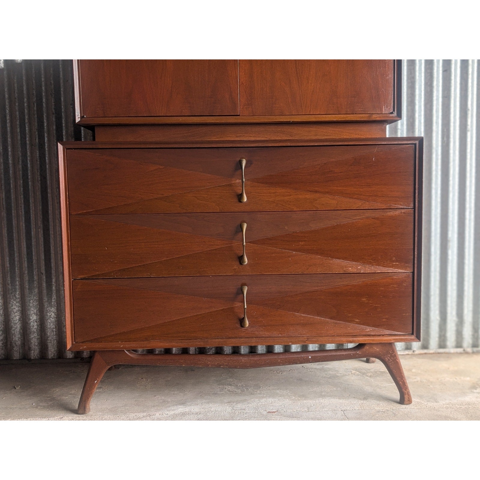 Vintage Mid-Century Modern Diamond Front Highboy Dresser