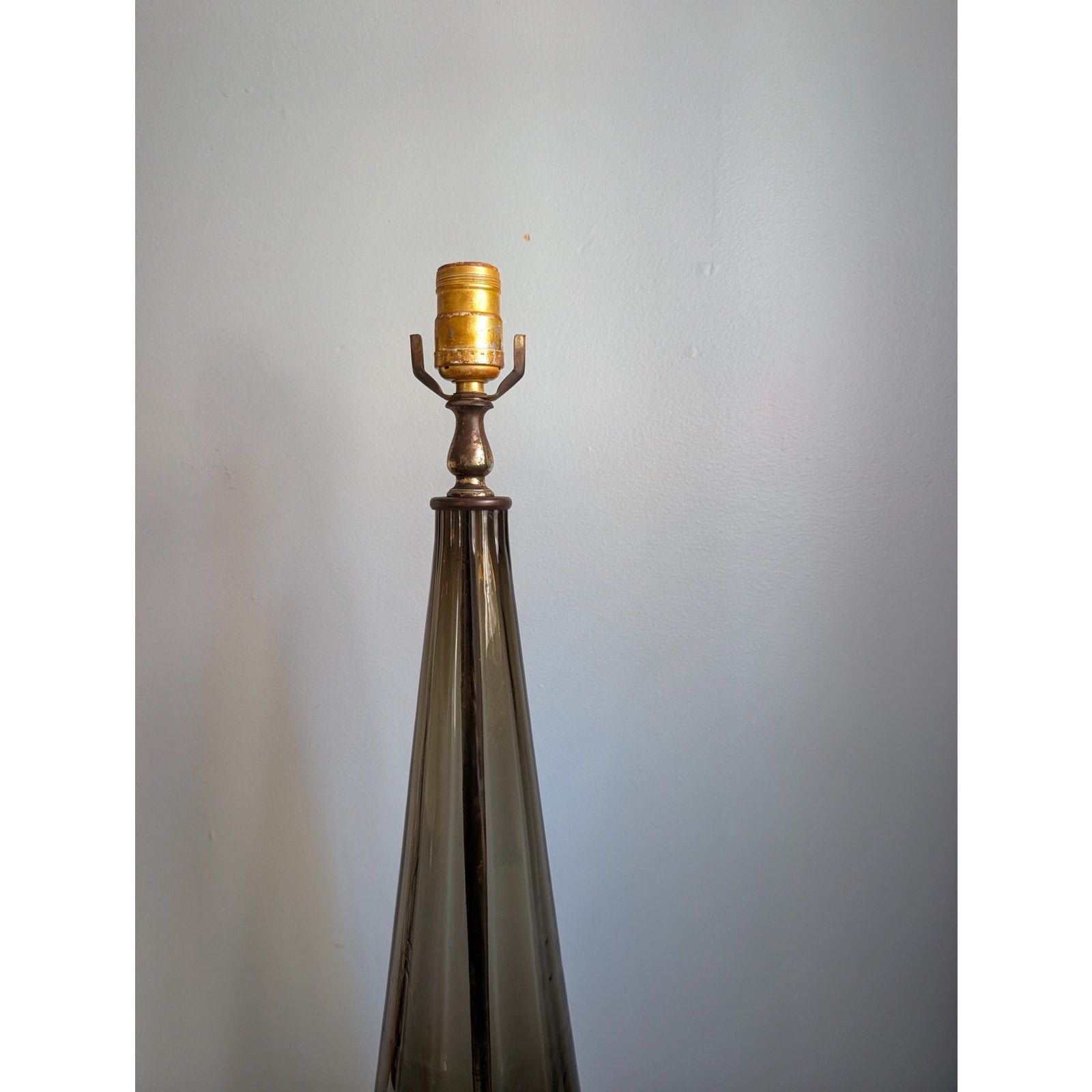 Striking vintage mid-century modern smoked glass lamp. The tall, elegant silhouette and rich smoky tone give this lamp a timeless modern presence, perfect for bedrooms, living spaces, or statement lighting arrangements.