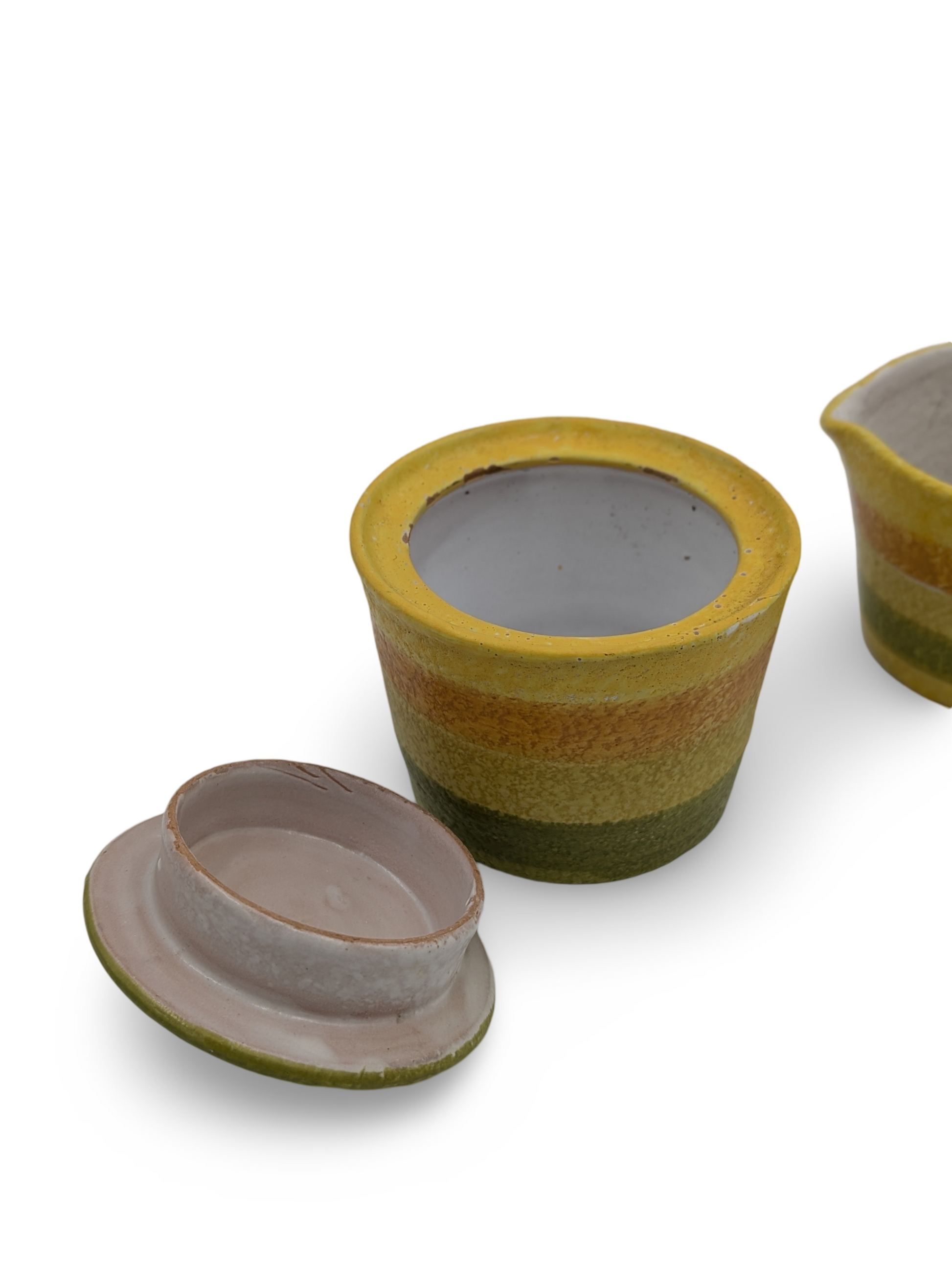 Vintage Mid Century Modern Italian Pottery Creamer & Sugar Bowl Set – 2.75" & 3" Tall