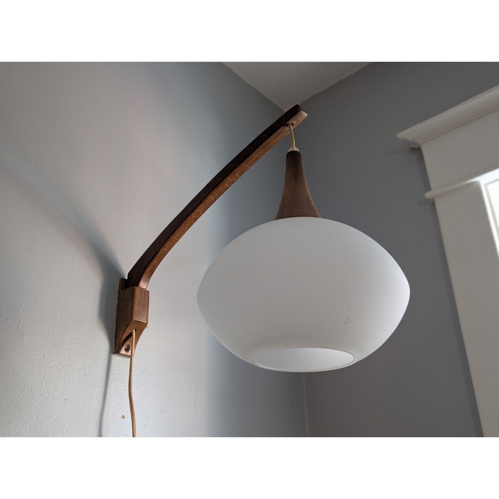 Vintage Mid-Century Modern Wall-Mount Swing Arm Pendant Lamp Frosted Glass Globe